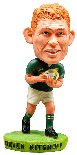 A selection of 11 Springbok players and coaching icons, reimagined as wobbling warrior collectibles. Each bobble head is an officially licensed product and certified by the MyPlayers Organisation.