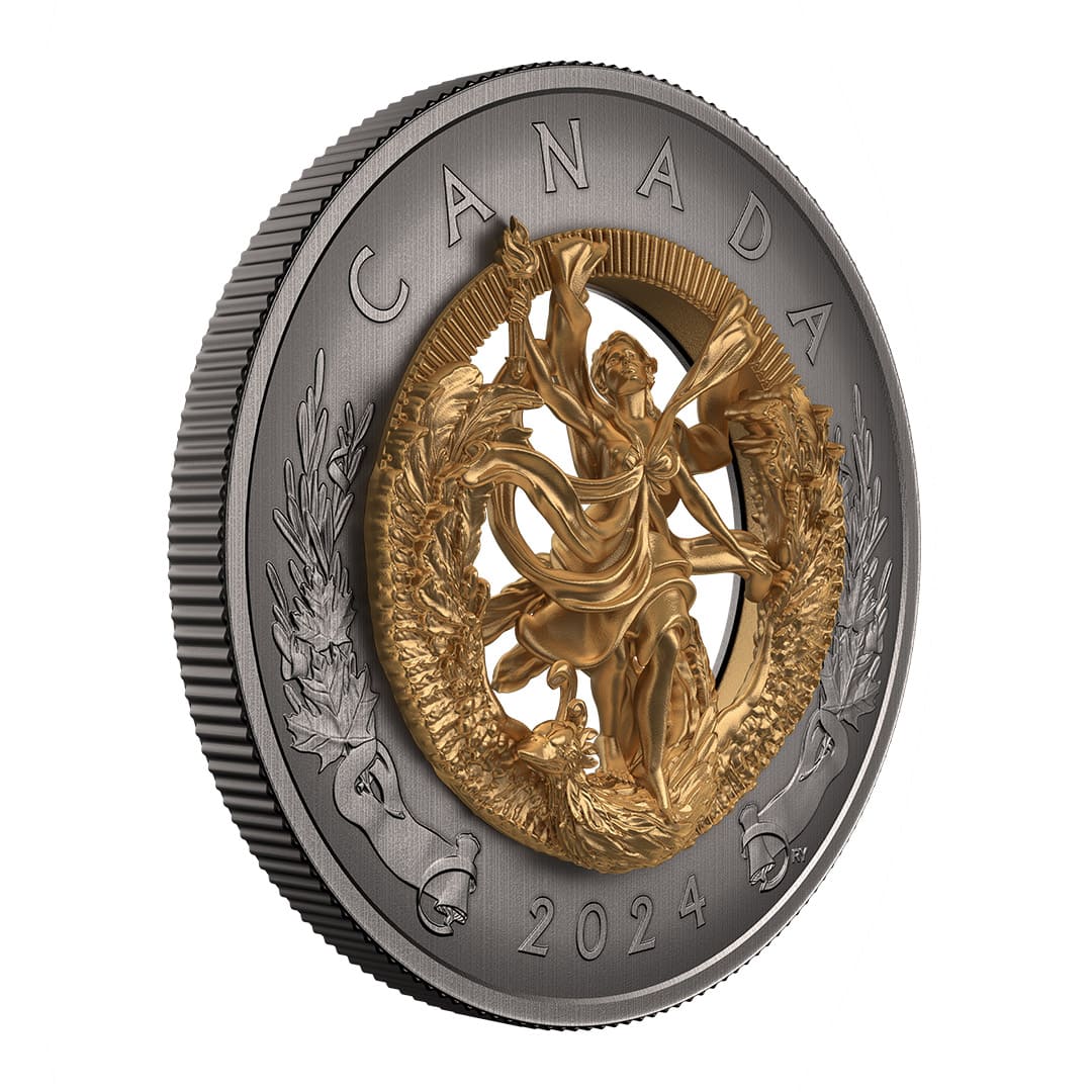 Celebrate the enduring spirit of freedom with the 2024 Allegory of Freedom, a breathtaking collector’s coin inspired by Ottawa’s National War Memorial. This extraordinary piece is a dual-sided masterpiece, symbolizing courage, resilience, and the light of liberty carried forward through generations.