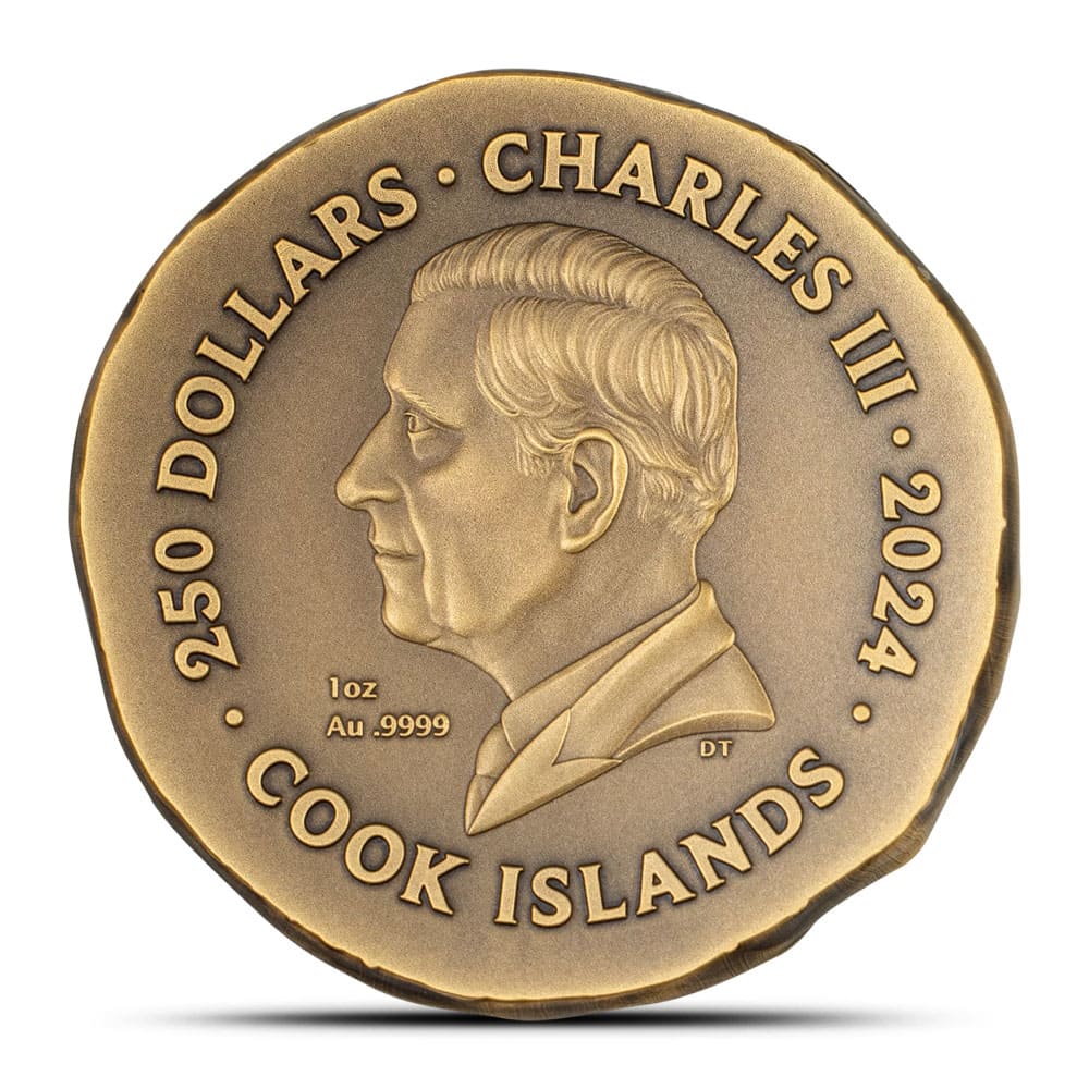 The legendary Gryphon, a majestic fusion of lion and eagle rooted in ancient Persian and Greek mythology, takes flight in this exceptional 2024 1 oz Antique Gold Coin from the Cook Islands. Renowned as a guardian of treasures in Greek lore and a protector of sacred sites in Christian art, the Gryphon embodies strength, bravery, and vigilance. This remarkable coin offers collectors a unique opportunity to own a piece steeped in history, mythology, and symbolism, making it an extraordinary addition to any collection.