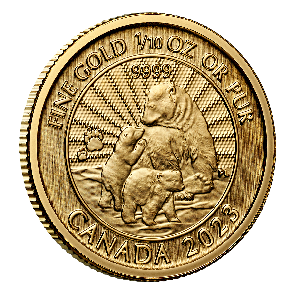 Celebrate the magic of the Arctic with the 2023 Majestic Polar Bear and Cubs Gold Coin, an exquisite piece of wildlife artistry crafted in 24-karat (99.99% pure) gold. This premium coin features a heartwarming design of a polar bear and her cubs, symbolizing the strength and bond of family.